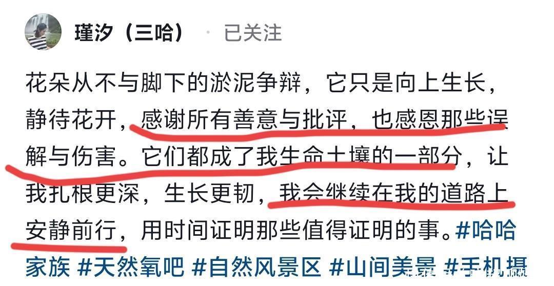 写在最后希望瑾汐能够好好应对此次网上的不友好言论,勇敢面对解决。只要姐妹团结一心,没有什么是解决不了的,毕竟三姐妹一荣俱荣、一损俱损。彩虹总在风雨后,希望瑾汐越来越强大,做三个孩子可以依靠的大树,也祝福哈哈家族越来越好。